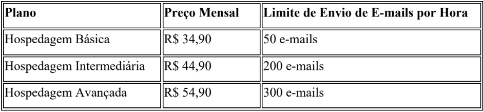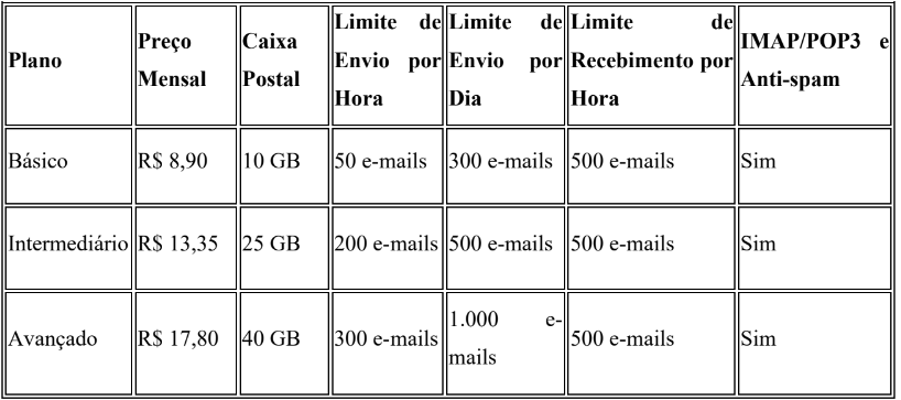 Cada plano de e-mail possui limites específicos de envio e recebimento:
