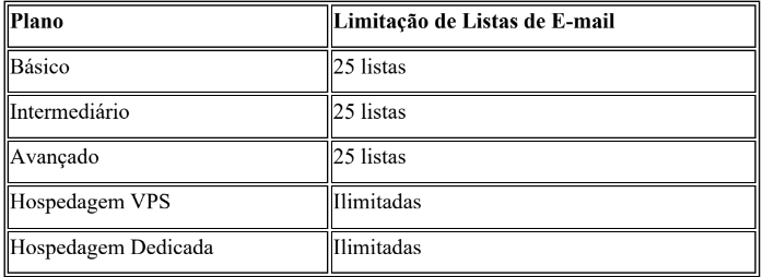 Cada plano da Clube da Web tem limites específicos para o uso de listas de e-mail: